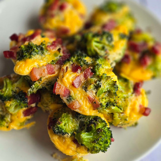 Mini eiermuffins met broccoli en spek. Recept vind je hier.