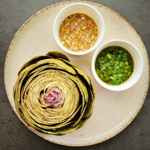 ✨️ Kuis de artisjok: snij de steel en top er af, knipzorgvuldig het topje van elk blaadje.