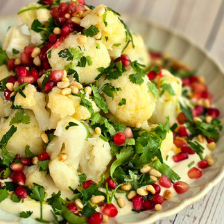 Bloemkool met tahini-yoghurtsaus en granaatappel