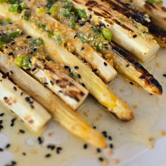 Serveer de hete asperges met de boter, zodat de boter erover smelt.