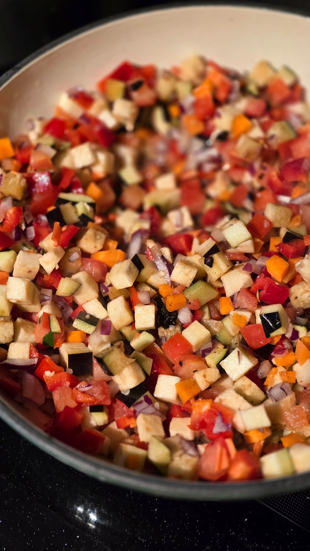 Doe de groenten allemaal in de pan met olijfolie en zet op laag vuur.