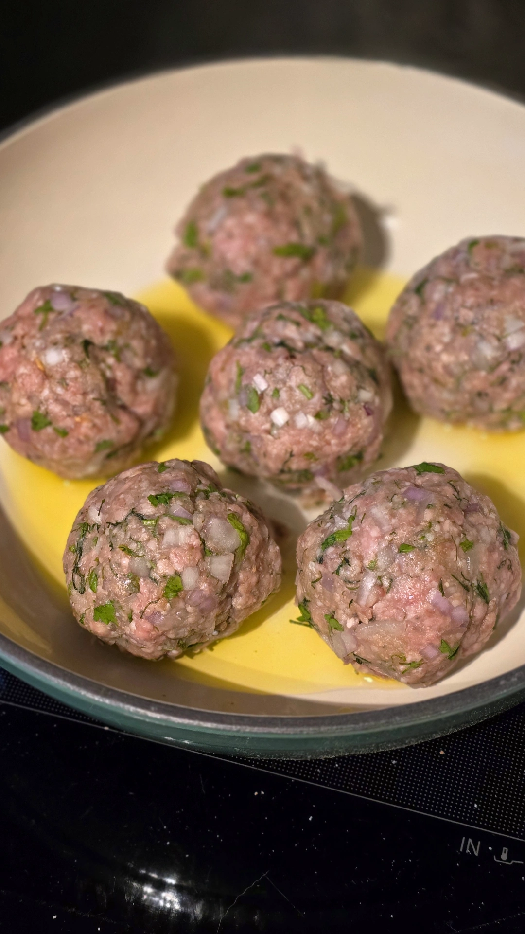 Bak de ballen kort aan in wat olijfolie, gewoon voor wat kleur.