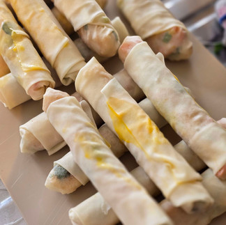 Je kan de loempia's ongebakken invriezen, maar wel met een bakpapiertje tussen zodat ze niet aan elkaar plakken.