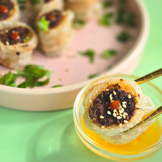 ⨠Herhaal tot alle rijstvellen en gehaktmengsel op is.