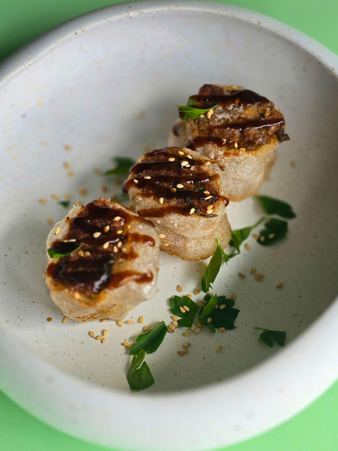 ⨠Versier met koriander, sesamzaad en een saus naar keuze.