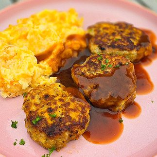 ✨ Ik serveerde ze met wortelpuree en vleesjus, maar dit kan ook met tomatensaus, frieten, aardappelen, boontjes....