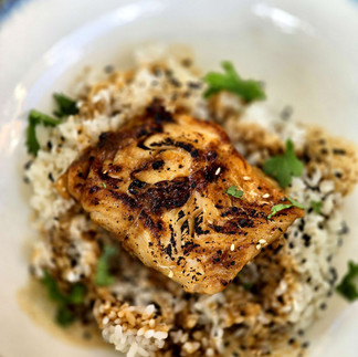 ⨠Bak de kabeljauw in een pan met olie. Giet de laatste 2 minuten de marinade er bij en laat even koken. Dit kan als saus gebruikt worden.