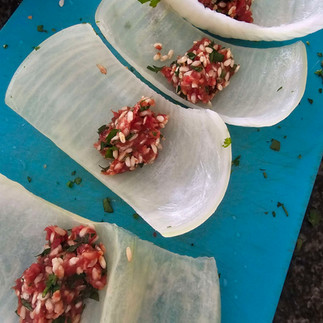 Dolma is Turks voor "gevuld", meestal word dit gedaan met kleine groene paprika's of aubergines. Ik maakte dolma met ui: "Soğan Dolma". Elke Turkse mama maakt dolma op haar eigen manier. Ik maakte het op mijn manier. Ik vind dit een top gerecht met enorm veel smaak.